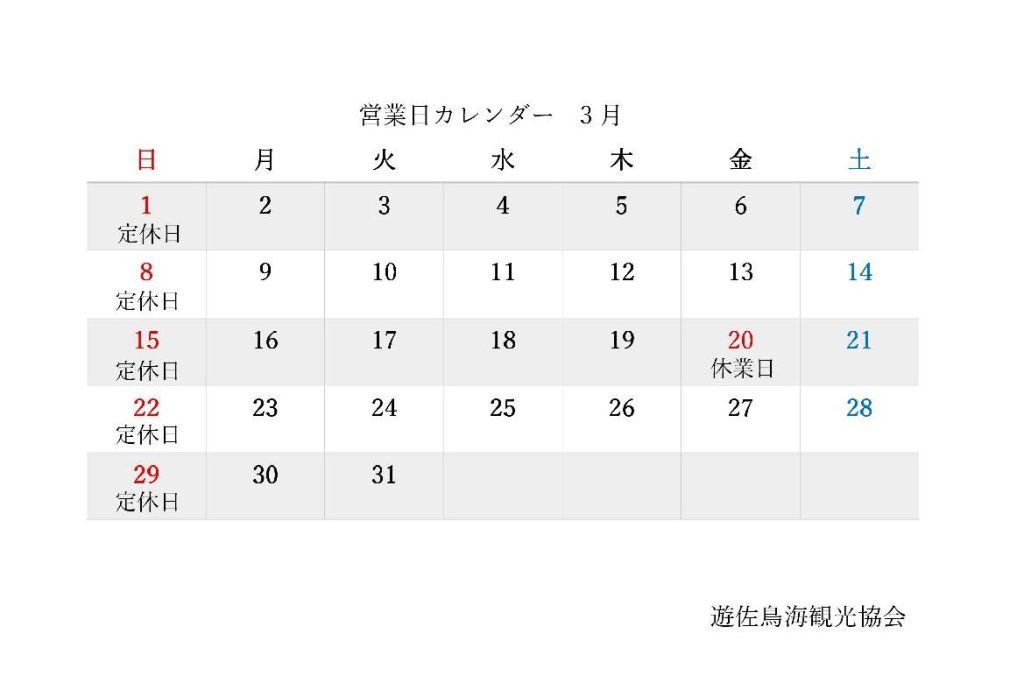 そのため、3月は日曜定休日に加えて、20日(金)を休業します。